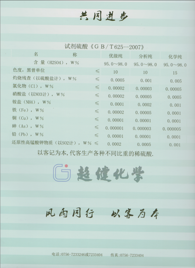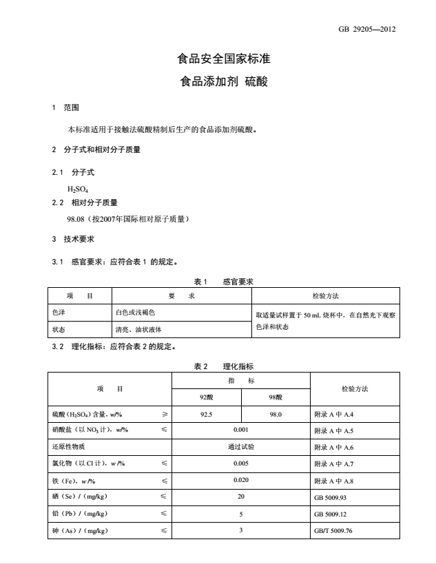 Food grade sulfuric acid product standards
